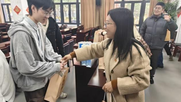 与会师生在东楼外合影留念环节,定格这份逐梦时光里的温暖与力量!合影结束后,学院为到场的每一位考研学子发放加油礼包,将大会推向暖心高潮。