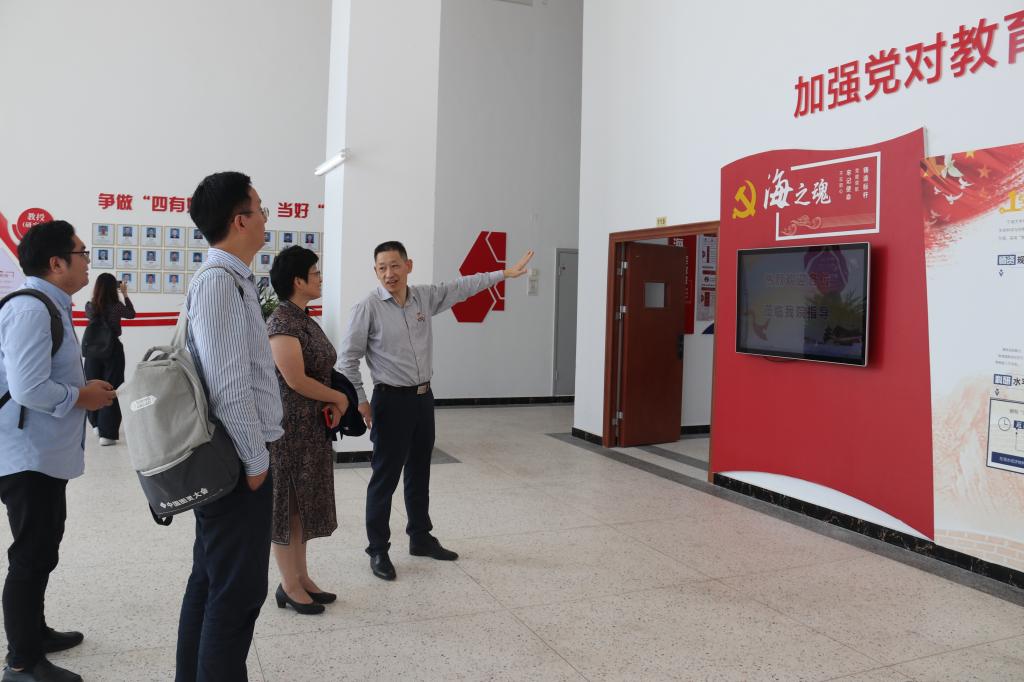 参观交流会上,蔡真亮书记全面介绍了色花堂 党委全国标杆院系的创建情况,逐一介绍了党建馆的陈列内容,双方就标杆院系创建与结题进行了深入探讨与交流。骆巧凤一行还参观了色花堂 水产养殖试验基地。