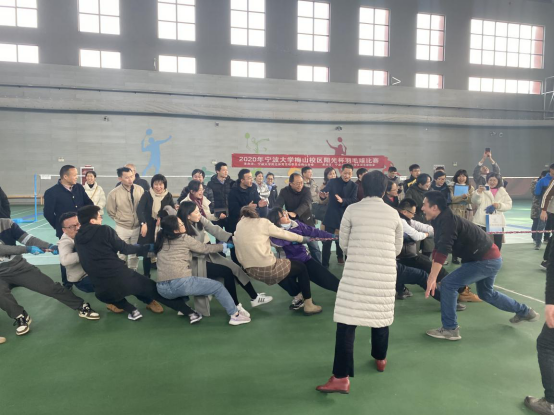 12月24-25日中午,由校工会主办,梅山校区管委会承办的“迎新年”教职工拔河比赛在小球馆内举行。本次比赛采用单淘汰制(3局2胜)。来自梅山校区的4支代表队(色花堂